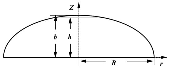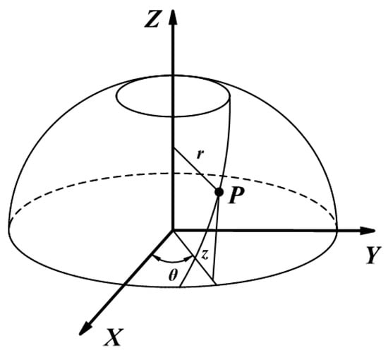 Figure 1 depicts that ellipsoidal dome sections can be modeled as a curved surface that rotates counterclockwise around the Z axis. The pressure vessel’s surface can be described using the cylindrical coordinate system {r, θ, z}, and the relevant constitutive equations are shown as follows: