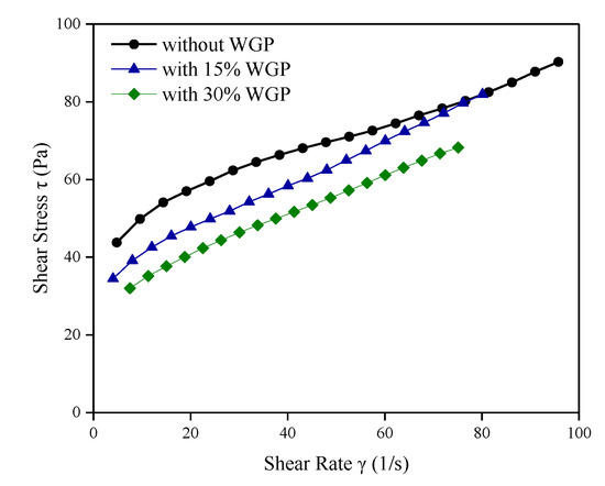 - Yin, W.; Li, X.; Sun, T.; Chen, Y.; Xu, F.; Yan, G.; Xu, M.; Tian, K. Utilization of waste glass powder as partial replacement of cement for the cementitious grouts with superplasticizer and viscosity modifying agent binary mixtures: Rheological and mechanical performances. Constr. Build. Mater. 2021, 286, 122953. [Google Scholar] [CrossRef]