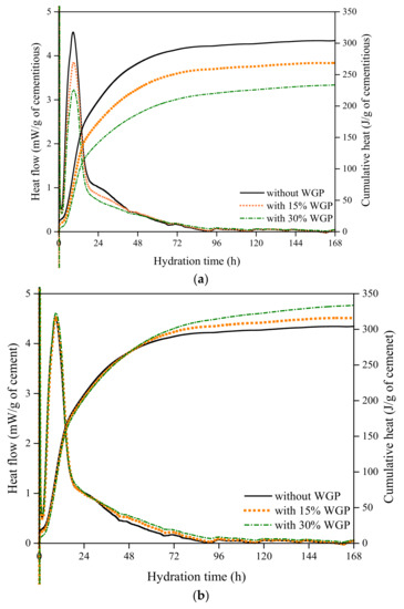 | Mixture | w/b | Water(g) | Cement (g) | WGP (g) | Hydration Peaks | Intensity of Hydration Peaks | ||