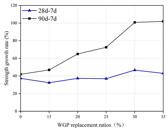 - The addition of 35% WGP increased cement hydration by 21.53%, 15.48%, and 11.68% at curing ages of 1, 28, and 90 days, respectively, compared to without WGP.