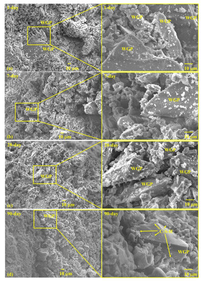 - WGP particles provide nucleation places for hydration products, facilitating subsequent growth of C-S-H and strength growth in late ages.