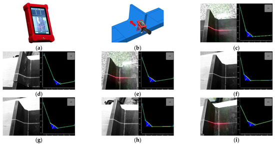 Wiki Scan scanning results; (a) Wiki Scan equipment; (b) measure position; (c) D75-100-R01-1; (d) D-1; (e) D-2; (f) D-3; (g) D-4; (h) D-5; (i) D-6.
