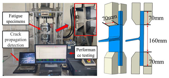 The specific preparation process of test specimens is shown in Figure 1. The T-joint specimens were prepared from orthotropic steel bridge decks, and the machining process was mainly divided into two steps: interior and exterior welding seams of U-ribs, and wire cutting.