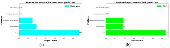 Feature importance plots for predicting (a) mass wear and (b) COF.