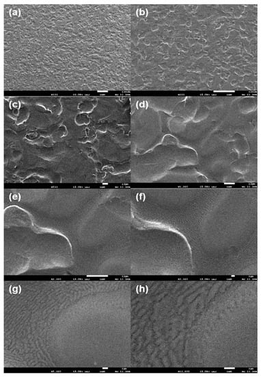 SEM images of surface of Zn–Al–Mg steel plate ((a–h) represent different magnifications).
