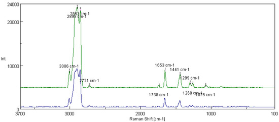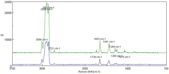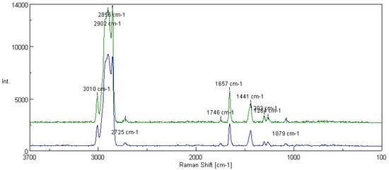 - Drabik, J.; Kazmierczak, B.; Kozdrach, R.; Rogos, E. The Use of Raman Spectroscopy to Monitor Changes in the Intensity of ratio of Integral Unsaturated Bands in Bio-Greases. Molecules 2023, 28, 3033–3046. [Google Scholar] [CrossRef]