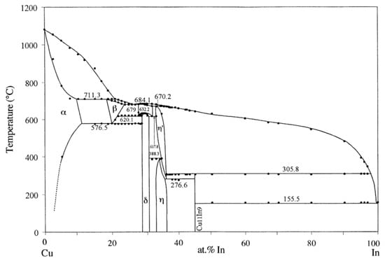 - Okamoto, H. Cu-In (copper-indium). J. Phase Equilibria Diffus. 2005, 26, 645. [Google Scholar] [CrossRef]