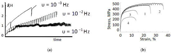 - Zuev, L.D.; Gromov, V.E.; Kurilova, I.F. Mobility of dislocations in single crystals of Zn under the action of current pulses. DAS USSR 1978, 239, 84–87. (In Russian) [Google Scholar]