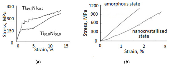 - Potapova, A.A.; Stolyarov, V.V.; Resnina, N.N. Shape memory effects in TiNi-based alloys subjected to electroplastic rolling. J. Mater. Eng. Perform. 2014, 23, 2391–2395. [Google Scholar] [CrossRef]
