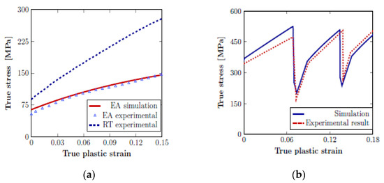 - Magargee, J.; Morestin, F.; Cao, J. Characterization of flow stress for commercially pure titanium subjected to electrically assisted deformation. J. Eng. Mater.-Technol. ASME 2013, 135, 215. [Google Scholar] [CrossRef]