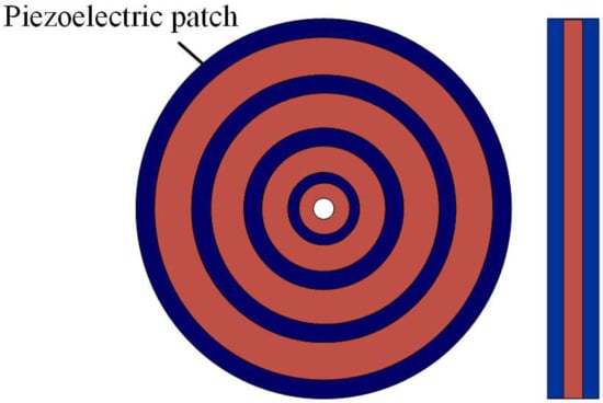 - Shu, H.; Liu, W.; Li, S.; Dong, L.; Wang, W.; Liu, S.; Zhao, D. Research on flexural wave band gap of a thin circular plate of piezoelectric radial phononic crystals. J. Vib. Control. 2014, 22, 1777–1789. [Google Scholar] [CrossRef]