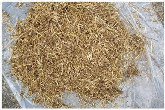 For composting the poultry manure, wheat straw was selected and used as a bulking agent (Figure 2). Wheat straw is one of the most common bulking agents used in composting. The straw was harvested from a farm located near Czestochowa, Poland.