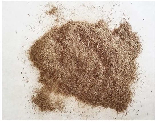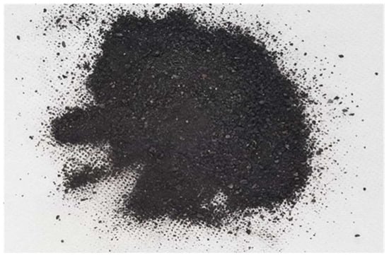 Poultry manure was thermally converted in the laboratory pyrolysis furnace. Pyrolysis was carried out with an inflow of 5 L/min of nitrogen supplied to the furnace. The selected heating temperatures were the following: 475, 575, 675, and 775 °C. Heating of the poultry manure samples took 120 min, and the retention time was 60 min. The study was performed according to the process parameters described by [35]. Figure 5 presents the final product, i.e., ground poultry manure-derived biochar.