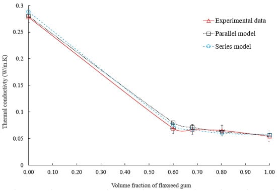 Comparison of flaxseed gum matrix thermal conductivity to experimental data.