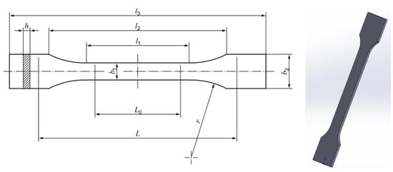 The tensile test specimen model was prepared in the 3D CAD software SolidWorks 2020 according to the ISO 527-2 standard [48] (Figure 1 and Table 3), and was converted to STL format for the slicer FleshPrint5 software.