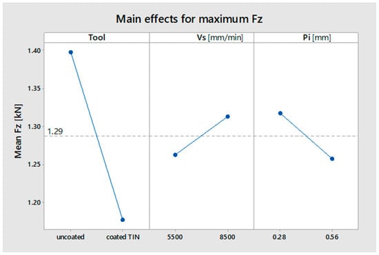 Variation in Fz force for case 2—coated tool with TIN—obtained with numerical simulation with LS-Dyna.