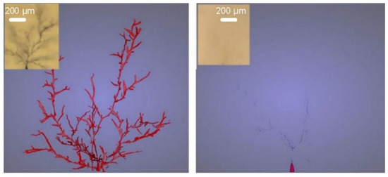Electrical tree before and after PP repair doped with functionalized nanoparticles [28], (figures are reproduced and adapted with permission).