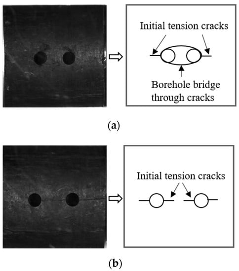 The solution to the circular borehole problem in the plane strain of elastic mechanics indicated that, during the loading process of coal specimens, the two sides of the borehole edge parallel to the loading direction acted as tensile stress concentration areas. Therefore, the initial tensile cracks of the one-borehole coal specimens were generated on both sides of the borehole edge.