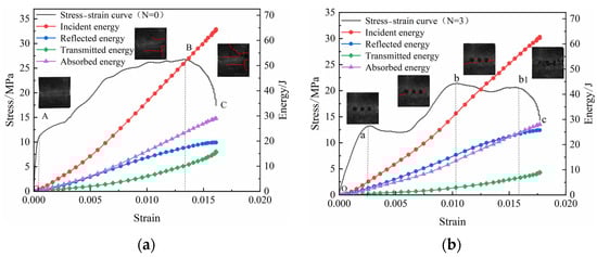 Energy evolution of intact coal specimens for (a) N = 0 and (b) N = 3.