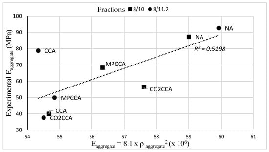 where Eaggregate is the elastic modulus of the aggregate, and is the apparent density of the aggregate. The calculated Eaggregate results are shown in Figure 7.