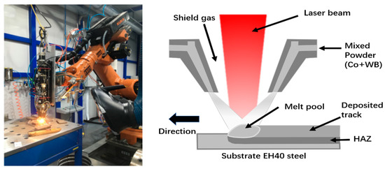 Lots of surface protection techniques such as plasma transferred arc (PTA), thermal spray, and laser-clad have been widely investigated. Compared with other surface treatment technology, laser-clad method has several advantages, such as low dilution [5], high energy density, superior mechanical properties [6], lower metallurgical defects, and a strong metallurgical bonding with the substrate [7,8]. It is considered as one of the most important and promising candidate for surface protective coatings.