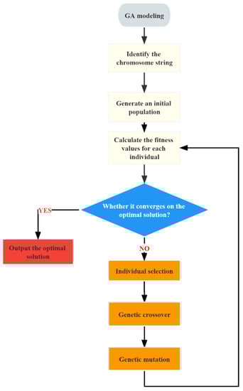 - Step 3: Choosing optimization algorithm—GA (process flowchart shown in Figure 3).