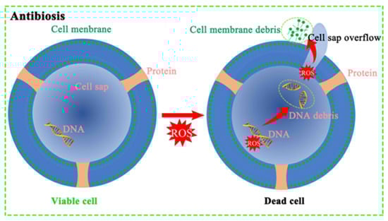 Schematic diagram of antibacterial activity of FF-Cu2O/AO [31].