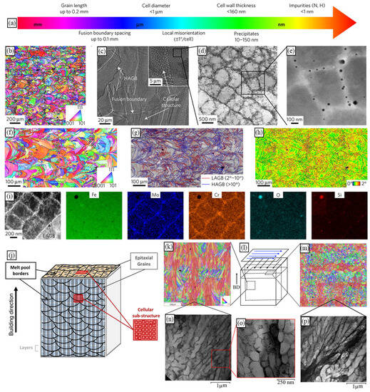 - Sato, K.; Takagi, S.; Ichikawa, S.; Ishimoto, T.; Nakano, T. Microstructure and Solute Segregation around the Melt-Pool Boundary of Orientation-Controlled 316L Austenitic Stainless Steel Produced by Laser Powder Bed Fusion. Materials 2023, 16, 218. [Google Scholar] [CrossRef]