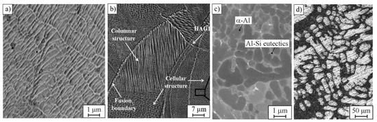 - Zhao, L.; Song, L.; Santos Macías, J.G.; Zhu, Y.; Huang, M.; Simar, A.; Li, Z. Review on the Correlation between Microstructure and Mechanical Performance for Laser Powder Bed Fusion AlSi10Mg. Addit. Manuf. 2022, 56, 102914. [Google Scholar] [CrossRef]
