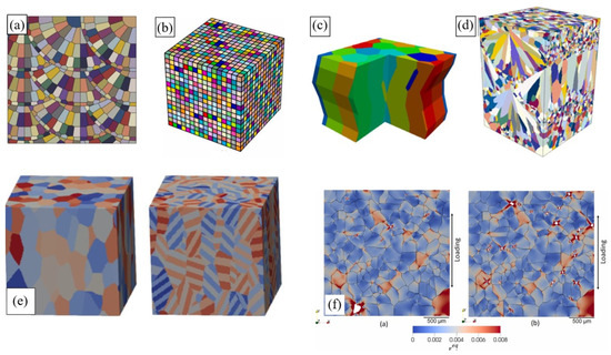 - Roters, F.; Diehl, M.; Shanthraj, P.; Eisenlohr, P.; Reuber, C.; Wong, S.L.; Maiti, T.; Ebrahimi, A.; Hochrainer, T.; Fabritius, H.-O.; et al. DAMASK—The Düsseldorf Advanced Material Simulation Kit for Modeling Multi-Physics Crystal Plasticity, Thermal, and Damage Phenomena from the Single Crystal up to the Component Scale. Comput. Mater. Sci. 2019, 158, 420–478. [Google Scholar] [CrossRef]