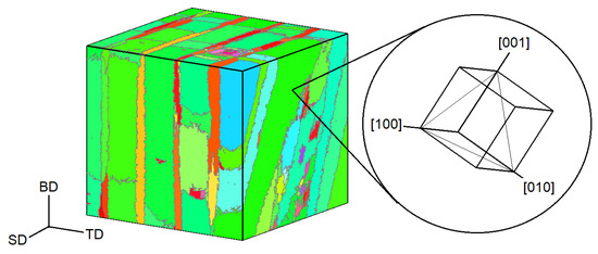 - Zinovieva, O.; Zinoviev, A.; Romanova, V.; Balokhonov, R. Three-Dimensional Analysis of Grain Structure and Texture of Additively Manufactured 316L Austenitic Stainless Steel. Addit. Manuf. 2020, 36, 101521. [Google Scholar] [CrossRef]