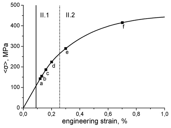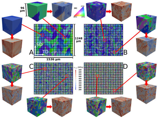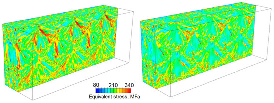 - Romanova, V.A.; Balokhonov, R.R.; Batukhtina, E.E.; Emelianova, E.S.; Sergeev, M.V. On the Solution of Quasi-Static Micro- and Mesomechanical Problems in a Dynamic Formulation. Phys. Mesomech. 2019, 22, 296–306. [Google Scholar] [CrossRef]