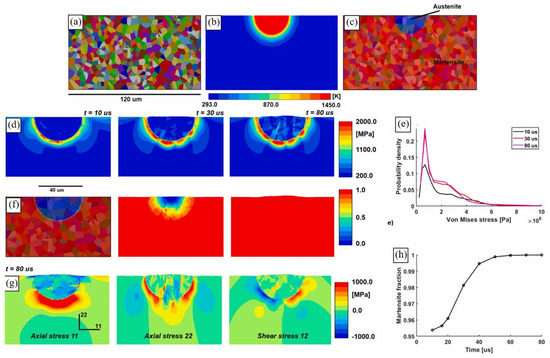 - Lindroos, M.; Pinomaa, T.; Antikainen, A.; Lagerbom, J.; Reijonen, J.; Lindroos, T.; Andersson, T.; Laukkanen, A. Micromechanical Modeling Approach to Single Track Deformation, Phase Transformation and Residual Stress Evolution during Selective Laser Melting Using Crystal Plasticity. Addit. Manuf. 2021, 38, 101819. [Google Scholar] [CrossRef]