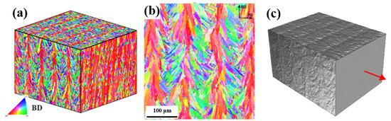 - Antonysamy, A.A.; Meyer, J.; Prangnell, P.B. Effect of Build Geometry on the β-Grain Structure and Texture in Additive Manufacture of Ti6Al4V by Selective Electron Beam Melting. Mater. Charact. 2013, 84, 153–168. [Google Scholar] [CrossRef]