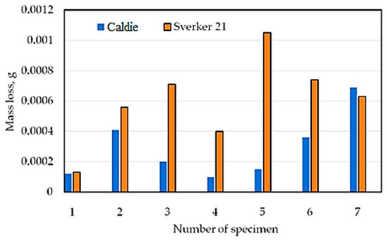 - For most of the tested sheets (samples 1–6), smaller mass losses were recorded for the countersample made of Caldie steel.