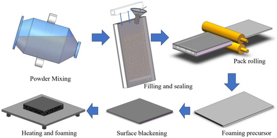 Furthermore, during the engineering process of producing precursors through pack rolling, disparities in properties between solid metal and core layer powder, coupled with variations in their deformation behavior, can pose various challenges. These challenges encompass diminished powder densities and the occurrence of edge cracking defects, ultimately resulting in compromised foaming properties and increased production costs [21,22]. Moreover, shaping the plate flatness during the foaming process represents a critical technical challenge in the pursuit of successful industrial-grade production of large-sized AFS.