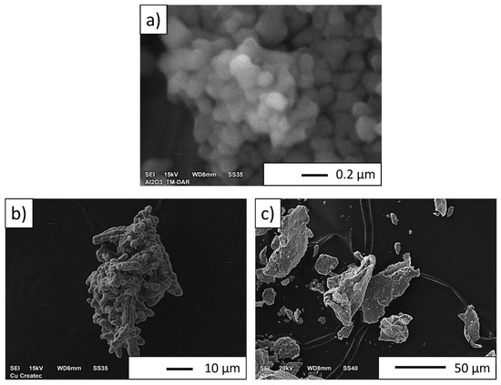 Powders used to form composites: (a) Al2O3; (b) Cu; (c) Cr.