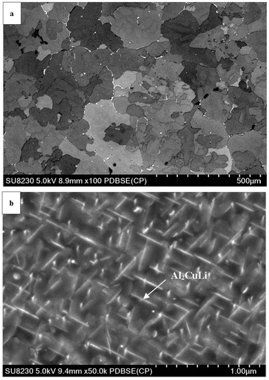 The microstructure of Al-Li alloys plays a crucial role in determining their macroscopic properties. As a result, the heat treatment process parameters can have a significant impact on the microstructure, allowing for potential modifications. These tailored microstructural features can ultimately enhance the mechanical properties of the alloy [7,8,9,10].