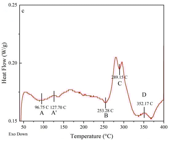 In Figure 8a, the exothermic peak A appears to correspond to the formation of GP zones, while the small endothermic peak A’ around ~150 °C likely indicates the dissolution of GP zones. The presence of peak B at approximately 250 °C can be attributed to the formation of the δ’ phase.