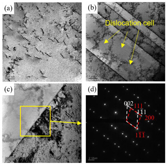 Dislocation strengthening means that in the process of introducing plastic deformation, the higher the dislocation density, the stronger the hindering effect of the dislocation movement and the stronger the ability of the alloy to resist deformation so that the mechanical properties of the alloy are enhanced. The contribution of dislocations to the strength of the alloy can be estimated by the Bailey–Hirsch formula [33].