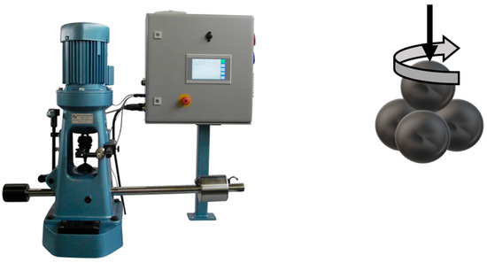 The Four-ball tester equipment used for the examinations is shown in Figure 1. The schematic illustration of the principle of the measurements is also shown in Figure 1.