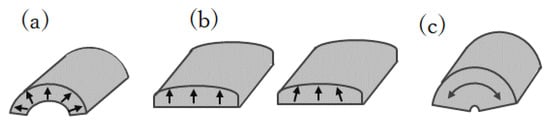 Plate-shaped magnets have traditionally been used for mounting on the traction motors of HEVs. To accommodate hot-deformed magnets in an HEV’s motor design, plate-shaped hot-deformed magnets, as shown in Figure 3, were commercialized in 2016 by Daido Electronics. Additionally, Figure 8 illustrates further development of flexible shape extrusion, which has resulted in the creation of (a) arc-shaped magnets with radial orientation, (b) bread-loaf-shaped magnets with radial and axial orientations, and (c) fan-shaped magnets with circumferential orientation. These new shapes of hot-deformed magnets were designed to cater to the requirements of modern motor designers.