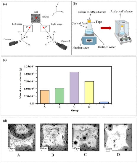 Figure 2c. Notably, the porous PDMS substrate demonstrated significantly improved permeability compared to the pure PDMS substrate. Among the different groups of porous PDMS substrates, Group C had the highest amount of water vapor permeating through them in a given time period which exhibited the highest permeability.