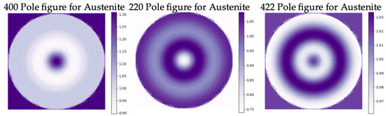 220, 400, and 422 pole figures of austenite planes in BMS222 melt-spun ribbons.