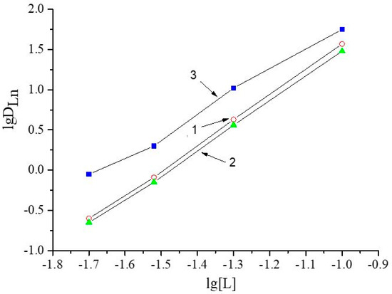 The values of slopes for Pr(III), Nd(III), and Dy(III) are 2.8 ± 0.2, 2.9 ± 0.2, and 3.0 ± 0.3, respectively. Thus, for each of the selected REEs, the stoichiometric ratio REE: L = 1:3, which is in agreement with previously obtained data on the extraction of REEs by using solutions of carbamoylmethylphosphine oxides from nitric acid media [52].