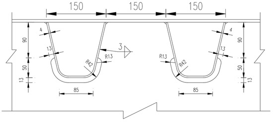 Geometry of U-rib and cutout details in fatigue model (in mm).