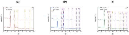 The three catalysts manifested a stable performance, achieving conversion values higher than 90% without decreasing over time. The cumulative volume of the obtained hydrogen presented a linear increase, corroborating the continuous production without signs of catalytic deactivation. After this stability test, XRD analysis was performed on the used catalysts (Figure 9).