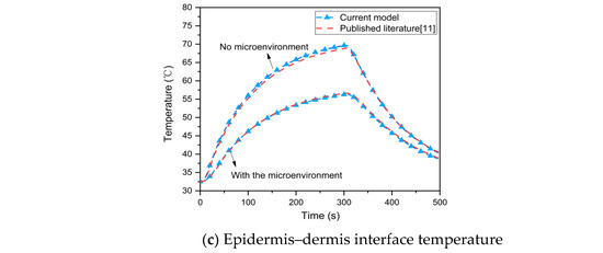 | Dermis–subcutaneous interface | 44 ≤ T ≤ 50 | 4.32 × 1064 | 50,000 |