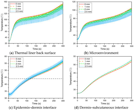 3.2. Effects of Fabric Periodic Movement on the Heat Transfer and Skin Burns