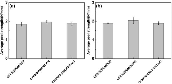 The average peel strength of CFRP/EPDM composites. (a) 160 °C, 1 h. (b) 170 °C, 1 h.